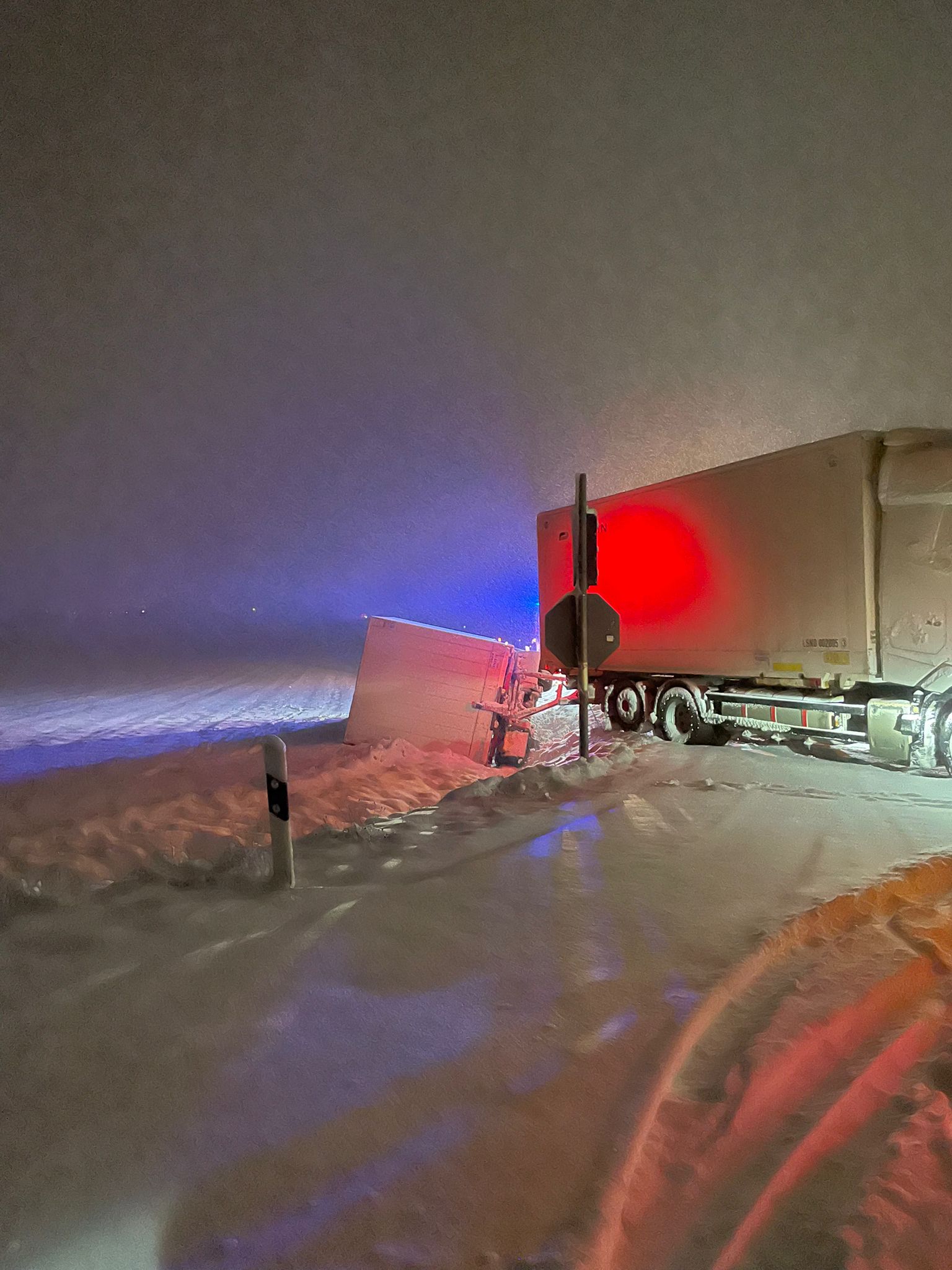 Auf der Anfahrt sahen wir jedoch an der Kreuzung B470/Schönwetterstraße, dass der Auflieger eines LKWs umgekippt und von der Straße abgekommen war.